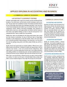 Here FINET, in conjunction with the ANZ Institute, offers a work-based programme that prepares the young person for a commercial life, and potential a future career. This is a 6-month online programme with a work internship placement in Malaysia and Singapore. This programme is registered with as a micro-credential programme with the Human Resources Development Corp, Malaysia or HRDCorp. This is the Applied Diploma in Accounting & Business programme from the ANZ Institute, delivered by Finet Associates fully online, for an early career beginning. Finet Associates is a registered Training Provider with the HRDCorp for more than 25 years.